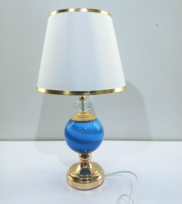 ✨ Blue & White Mix Gold Fabric Metal Body with Glass‑Stone Table Lamp