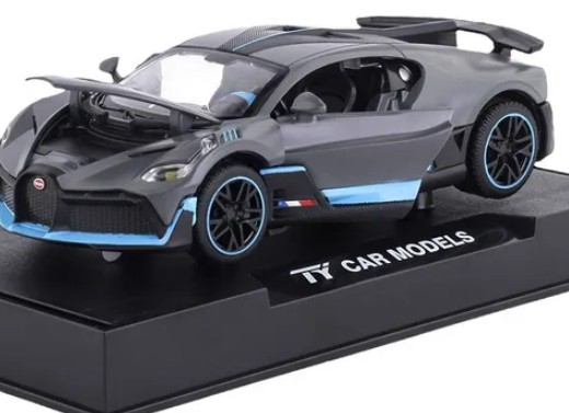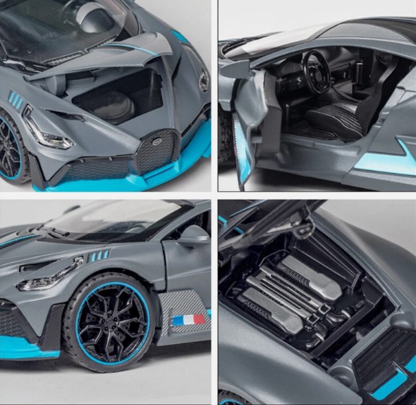 Experience luxury with this 1:36 scale Bugatti Divo diecast metal toy car. Features openable doors, working lights, and smooth pullback action.
