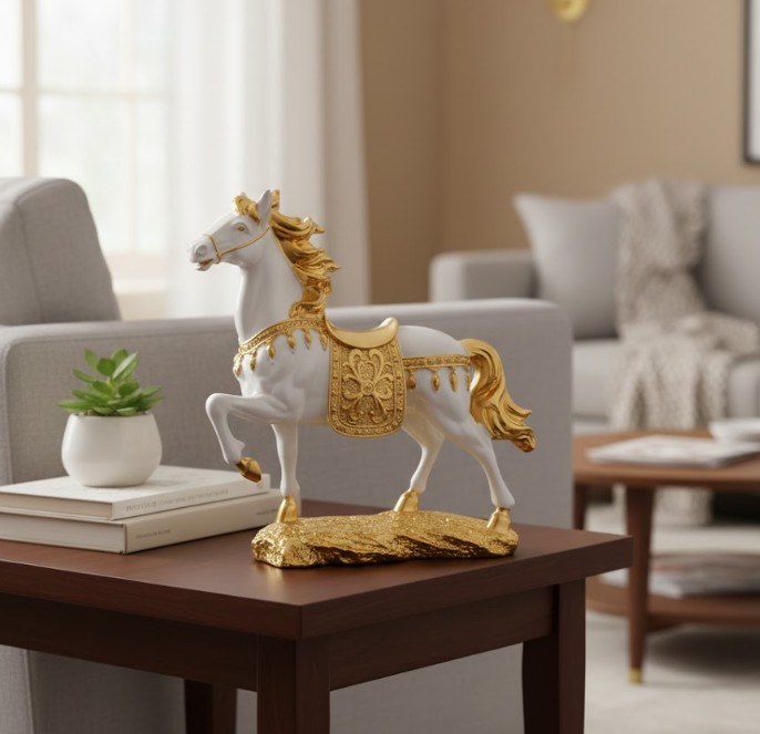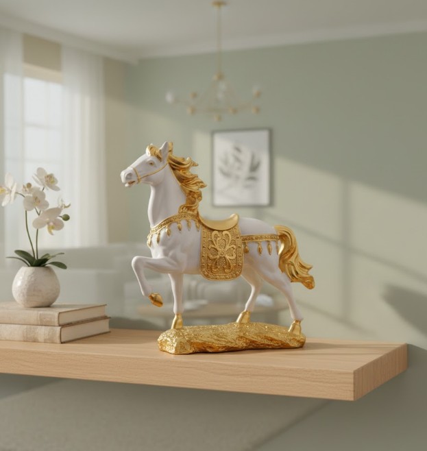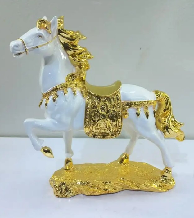 Nicdecor.com, nic home decor, luxury horse sculpture, resin showpiece BD, modern home decor, hotel desk decoration, premium statue BD, white and gold decor, animal craft sculpture, tabletop decorative piece