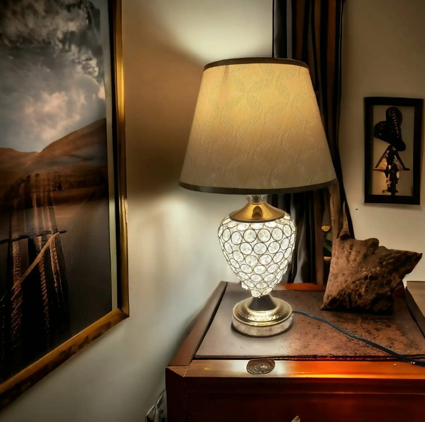 Bring a touch of modern elegance and luxury to your room with the Metal Crystal Table Lamp. Featuring a sleek metal body paired with a soft fabric shade, this lamp beautifully blends sophistication with a warm, ambient glow. The crystal accents reflect light beautifully, adding a hint of glamour to your bedroom or living space.