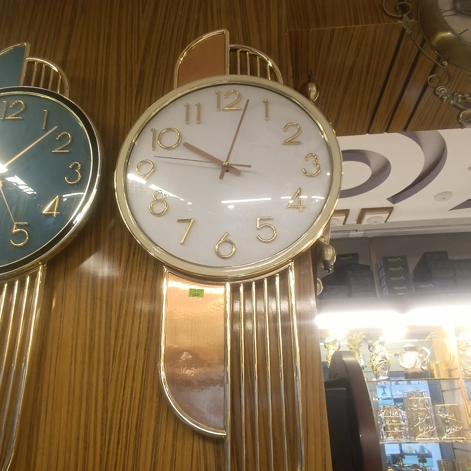 🕰️ Fiber & Glass Made Gold white & Gold green Color Wall Clock